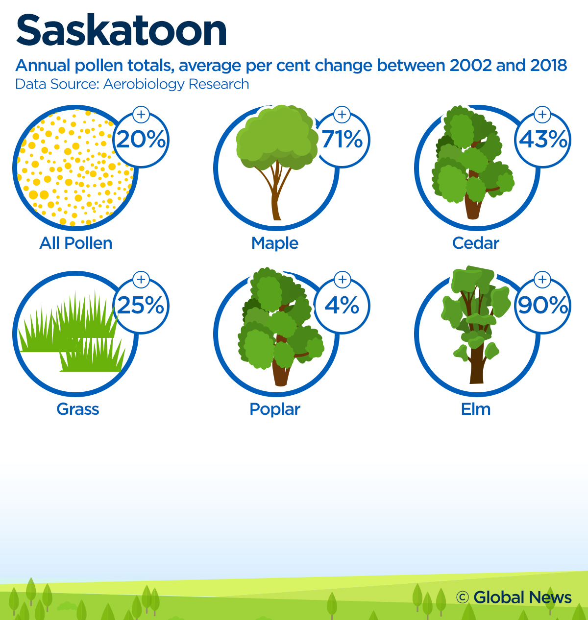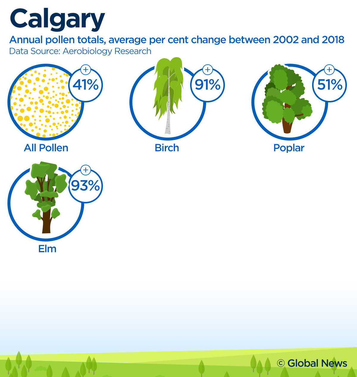 Data from Ottawa-based Aerobiology also shows that cities from Victoria to Montreal have seen significant increases in pollen levels over the past fifteen years — including big jumps in specific tree and grass pollens.