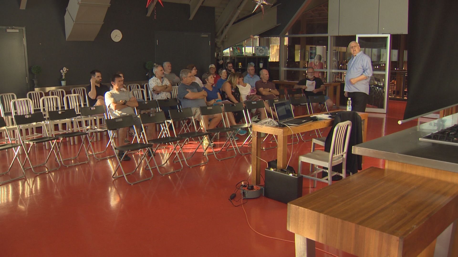 Beaconsfield residents gathered at a grocery store in Kirkland to discuss what options they have to force the city to build a sound barrier. Tuesday June 18, 2019. David Sedell / Global News
