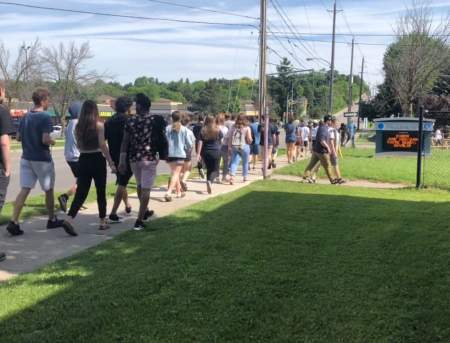 Students writing their exams at John F. Ross Collegiate Vocational Institute were forced to leave the school near Eramosa Road and Stevenson Street at around 9:30 a.m.