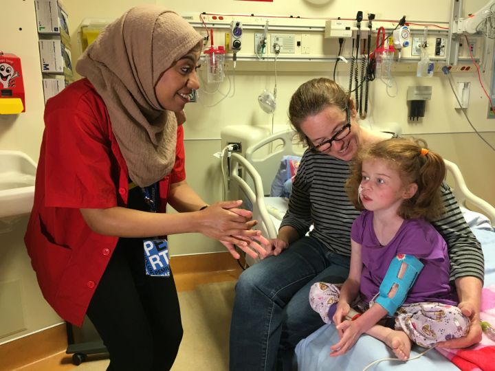 Every time they walk into the Alberta Children’s Hospital in Calgary, Grace George and Noor Bhatti are treated like VIPs.