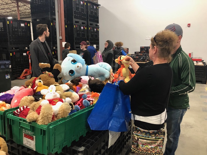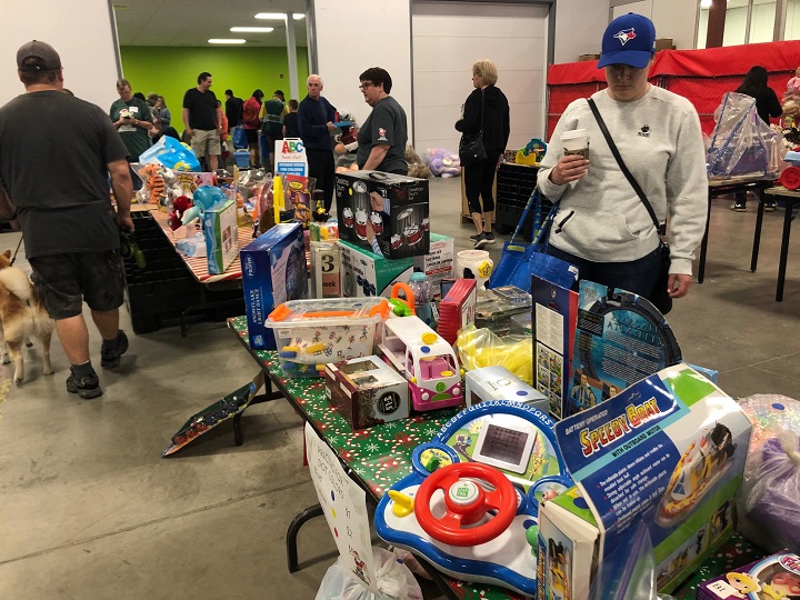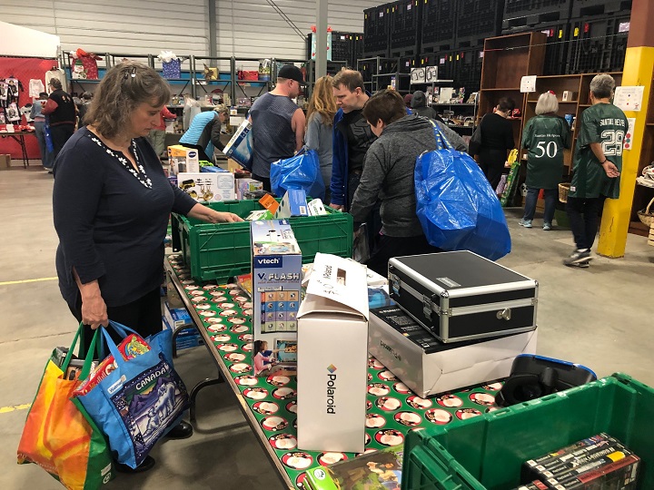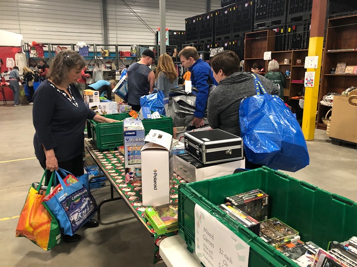 “This stuff has been sitting in Santas warehouse for anywhere from last Christmas to up to two years,” Santas executive director Lana Nordlund said. “We need to turn it into cash so that we can buy toys and books for the ages we most require, usually the older kids.”