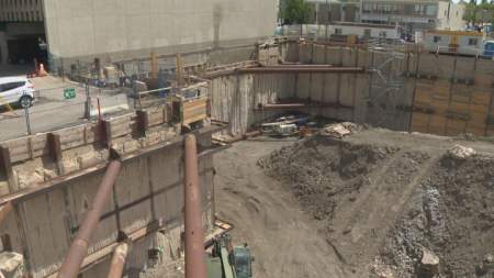 Work will primarily take place Monday to Friday. The dirt to fill the hole – enough to fill roughly 21 Olympic-sized swimming pools – will be trucked in between 6 p.m. and 7 a.m.