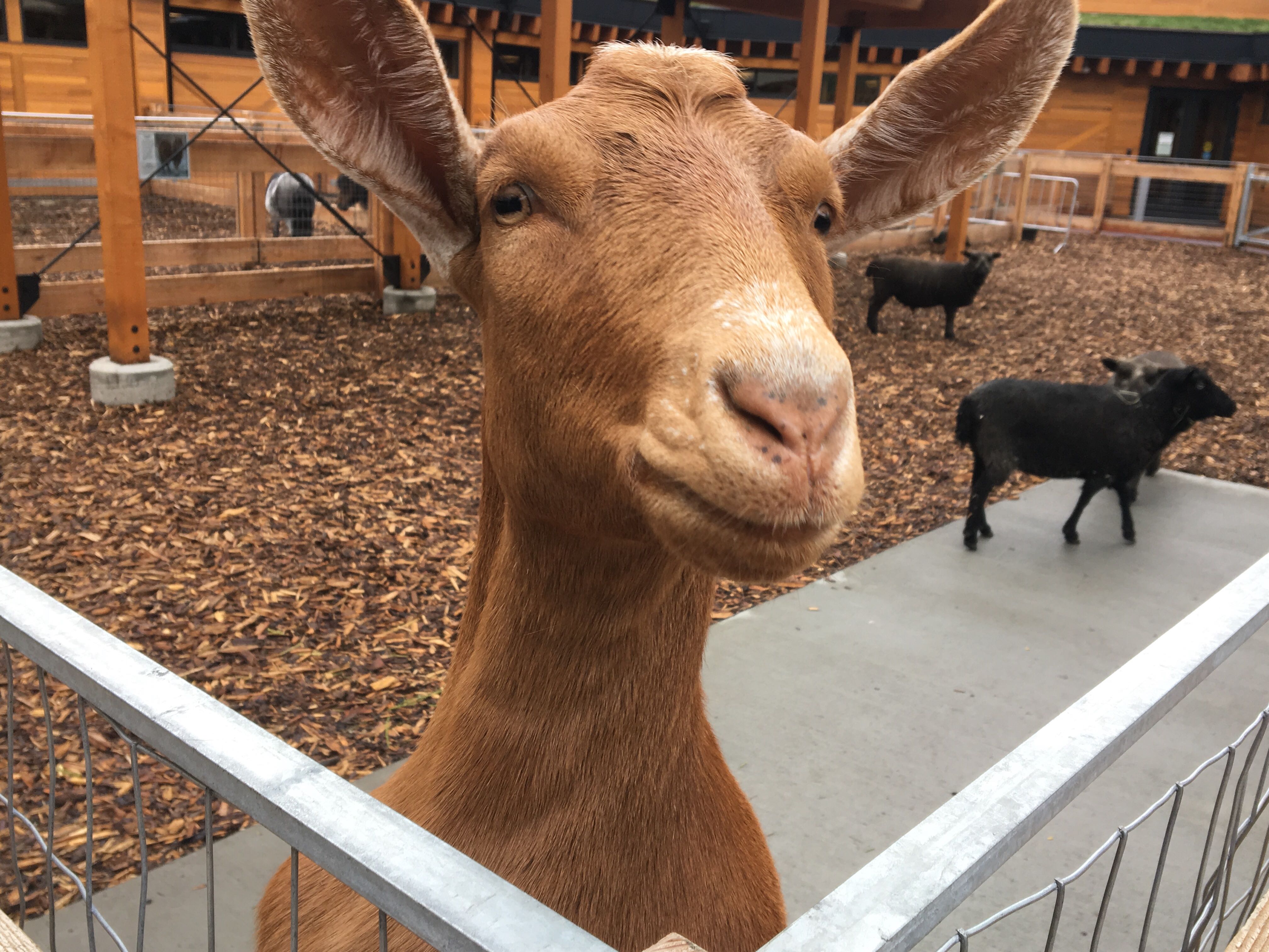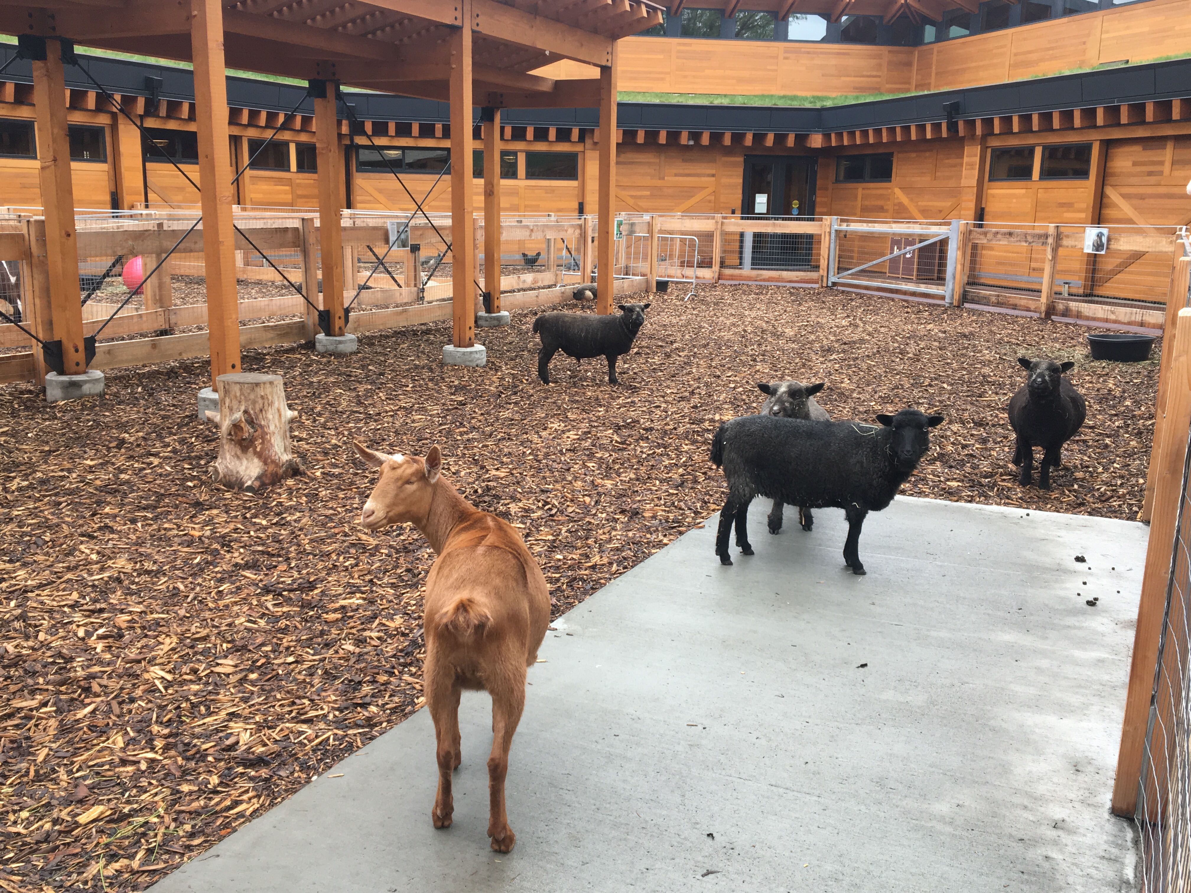 While at the urban farm, visitors will see pigs, ponies, cows, sheep, rabbits, cats, bees and chickens. There are also goats that have access to what’s described as a “360-degree green roof.”