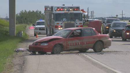 One passenger was ejected from the vehicle and was airlifted by STARS ambulance to hospital, according to Balgonie fire.