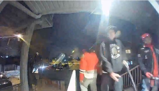 Edmonton police released video Friday that shows several masked individuals try to force their way into a home and then shooting through the front door on January 28.