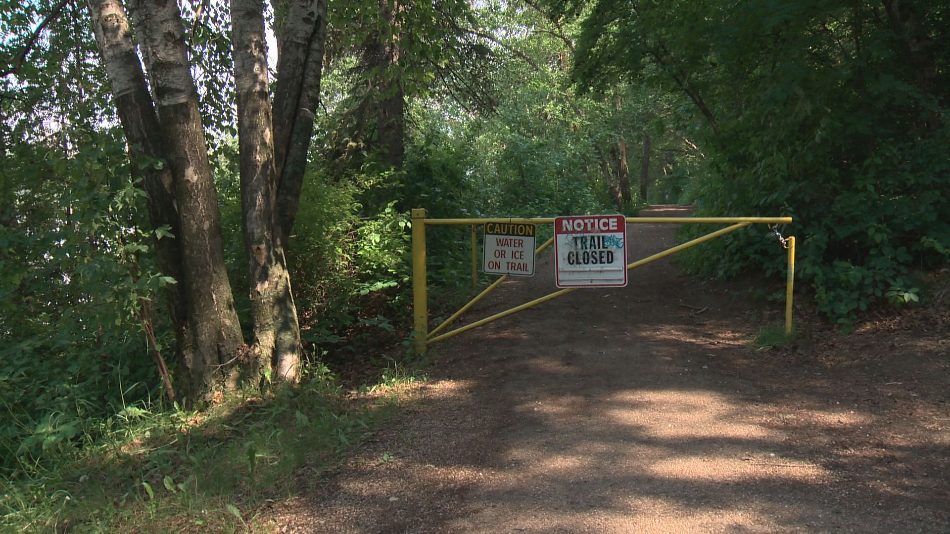 Several low-lying trails in the Edmonton river valley were closed on Friday due to high water levels. Global News
