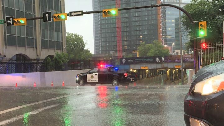 Calgary police were forced to close several roads due to the flash flooding, and firefighters responded to several calls about manhole covers that had been blown off.