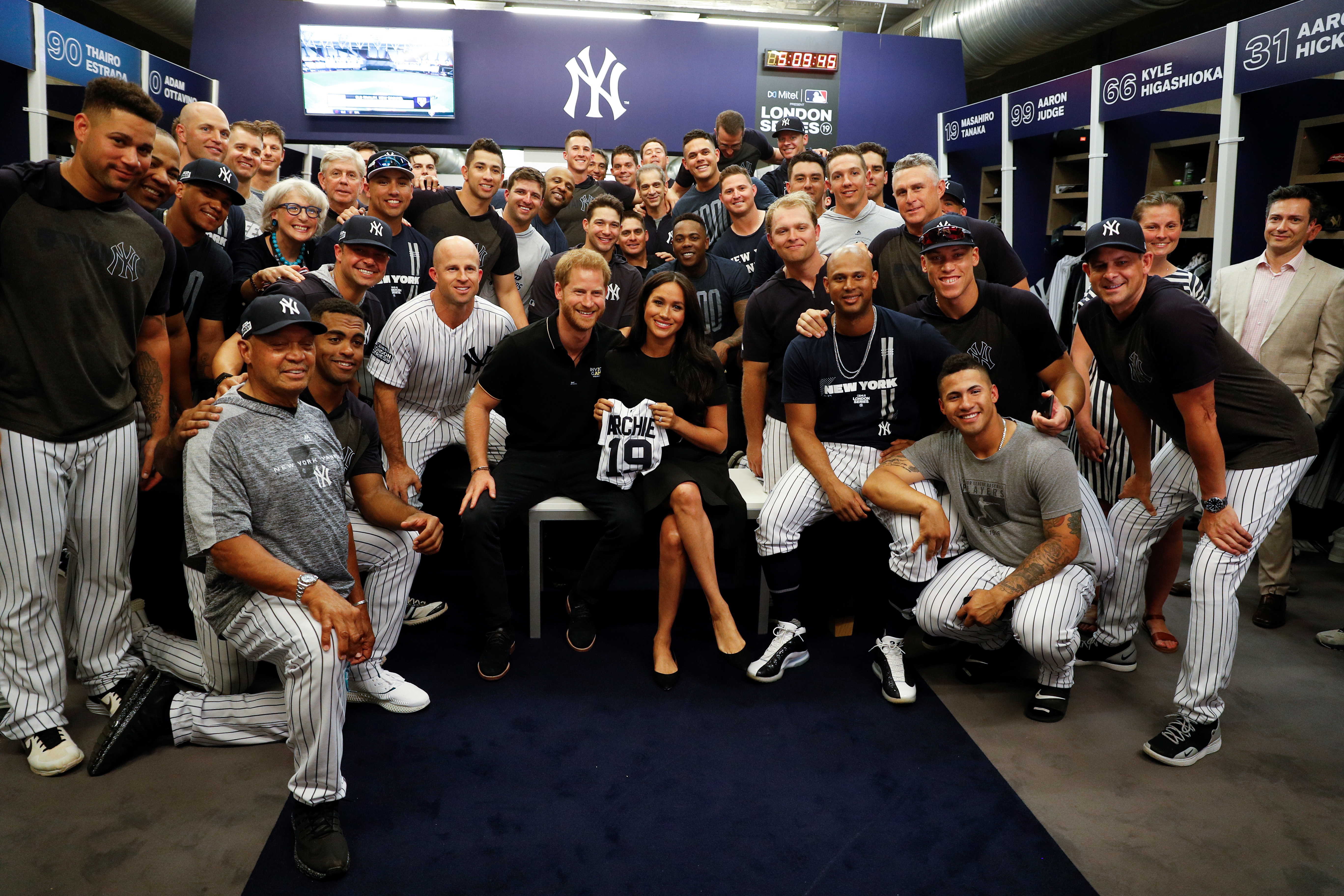 Prince Harry and wife Meghan, the Duchess of Sussex, took part in the ceremonial first pitch before the New York Yankees played the Boston Red Sox. The couple left month-old son Archie home as Meghan made one of her few public appearances since giving birth.
