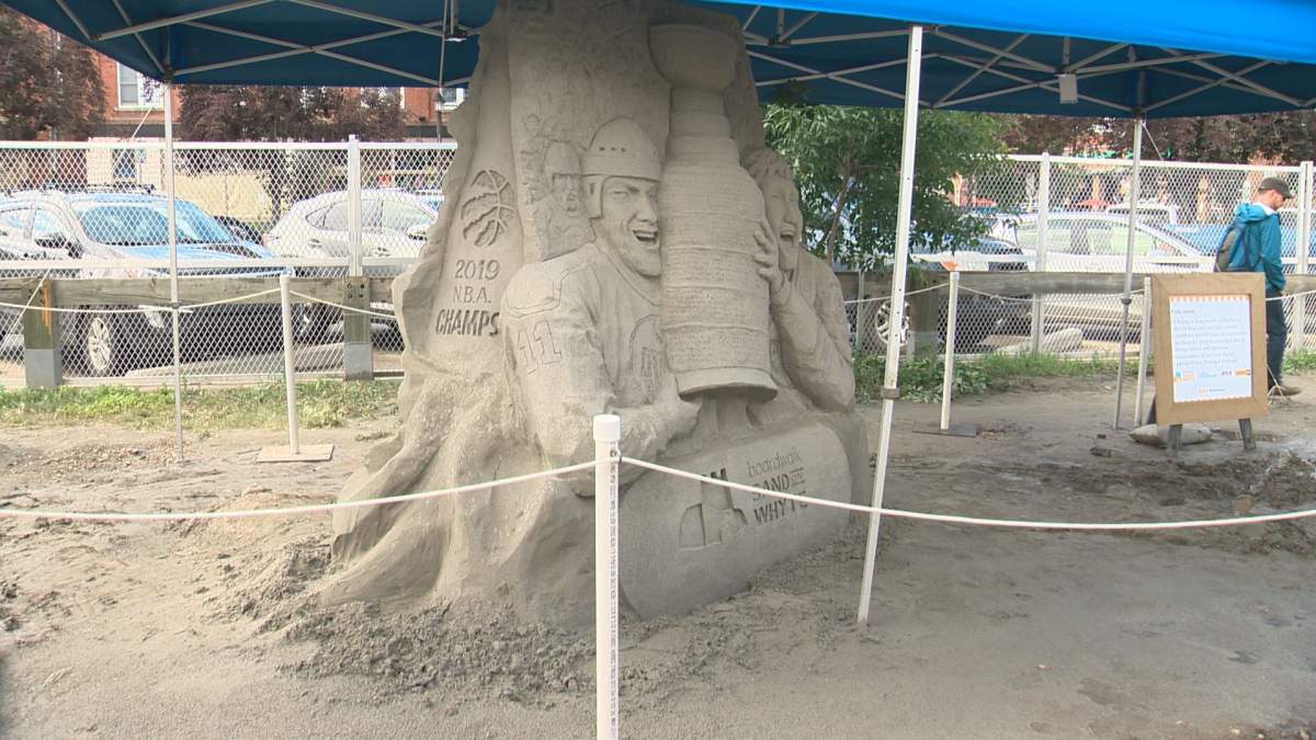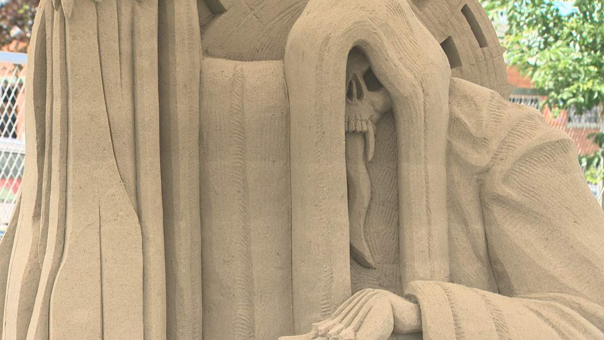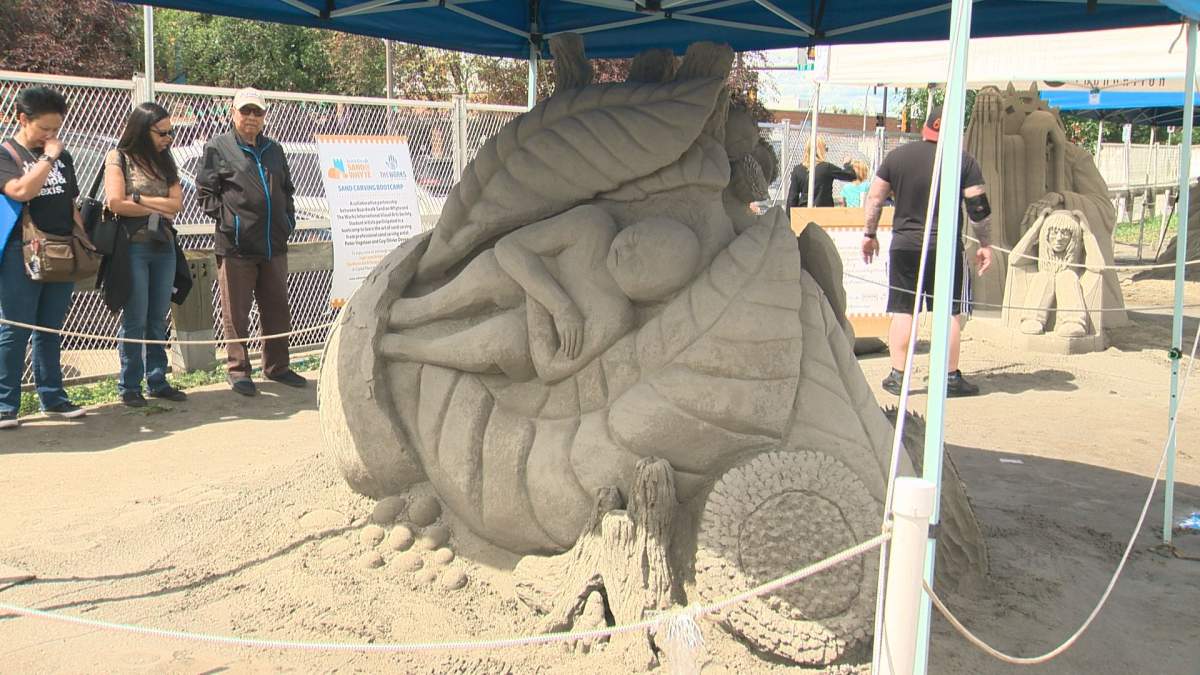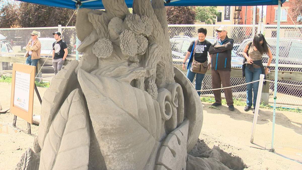 The beach has arrived on Whyte Avenue in the form of sand sculptures.