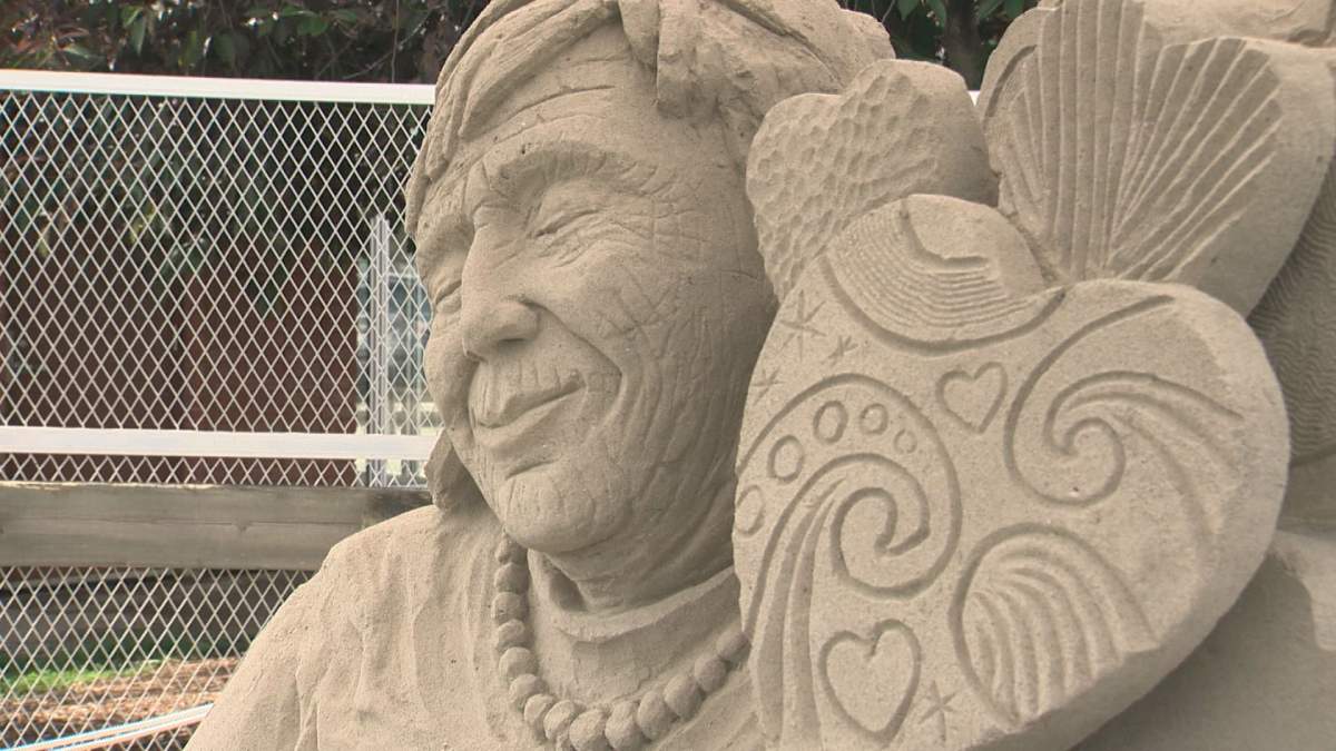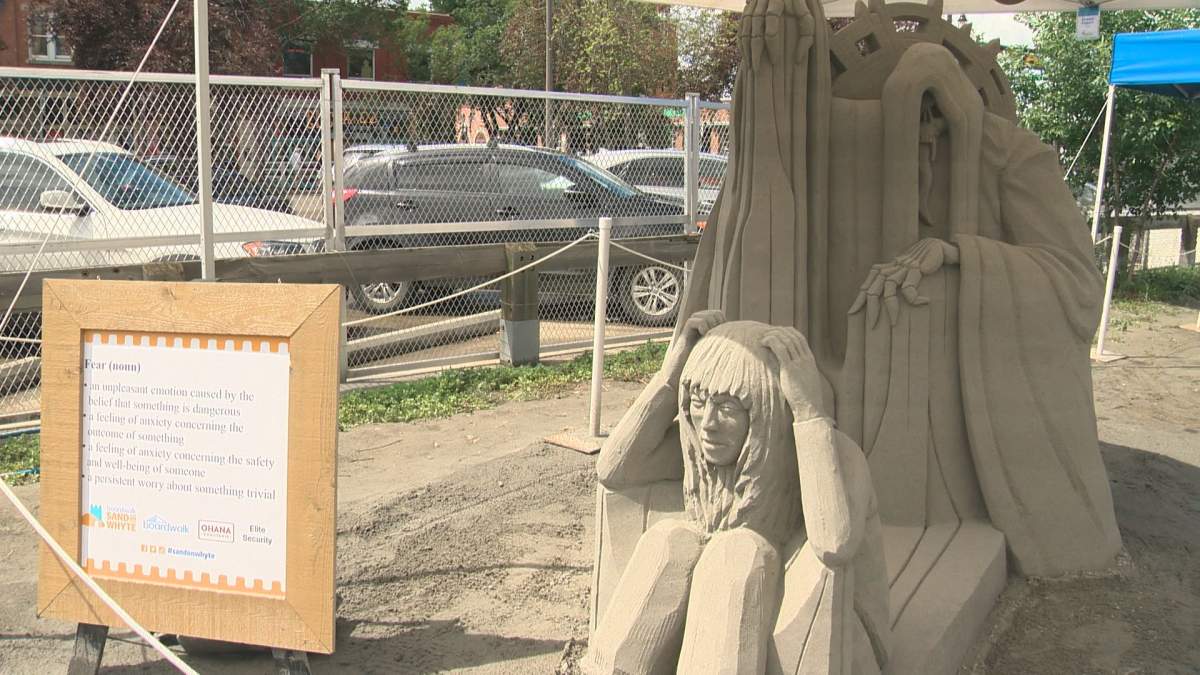 The sand carvings were created by two Canadian sand carving artists and explore several different emotions including love, joy, pride, hope, fear, stress and vanity.