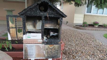 The Little Free Library on McCarthy Boulevard was set on fire Monday morning, according to a Facebook post.