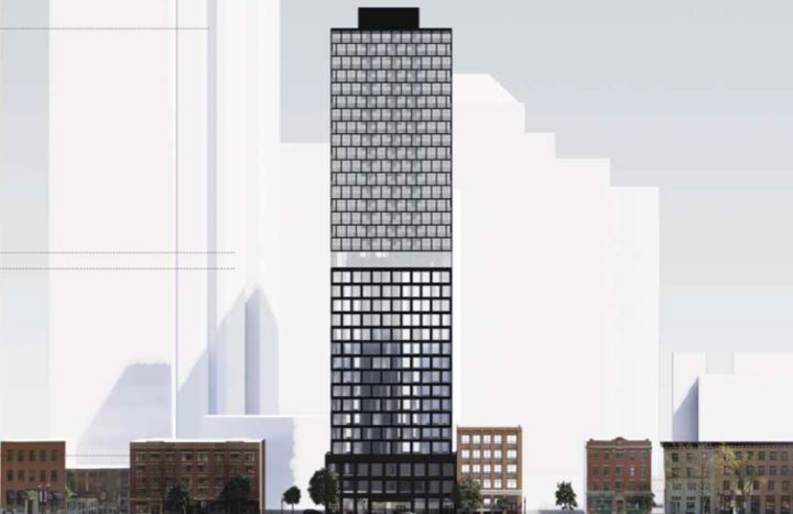 The proposed Mackenzie Tower by Urban Capital is zoned for approximately 38 storeys. It would have a brick facade to match the surrounding feel of the block, and the podium would be three storeys to match the other buildings next door, which are five storeys tall.