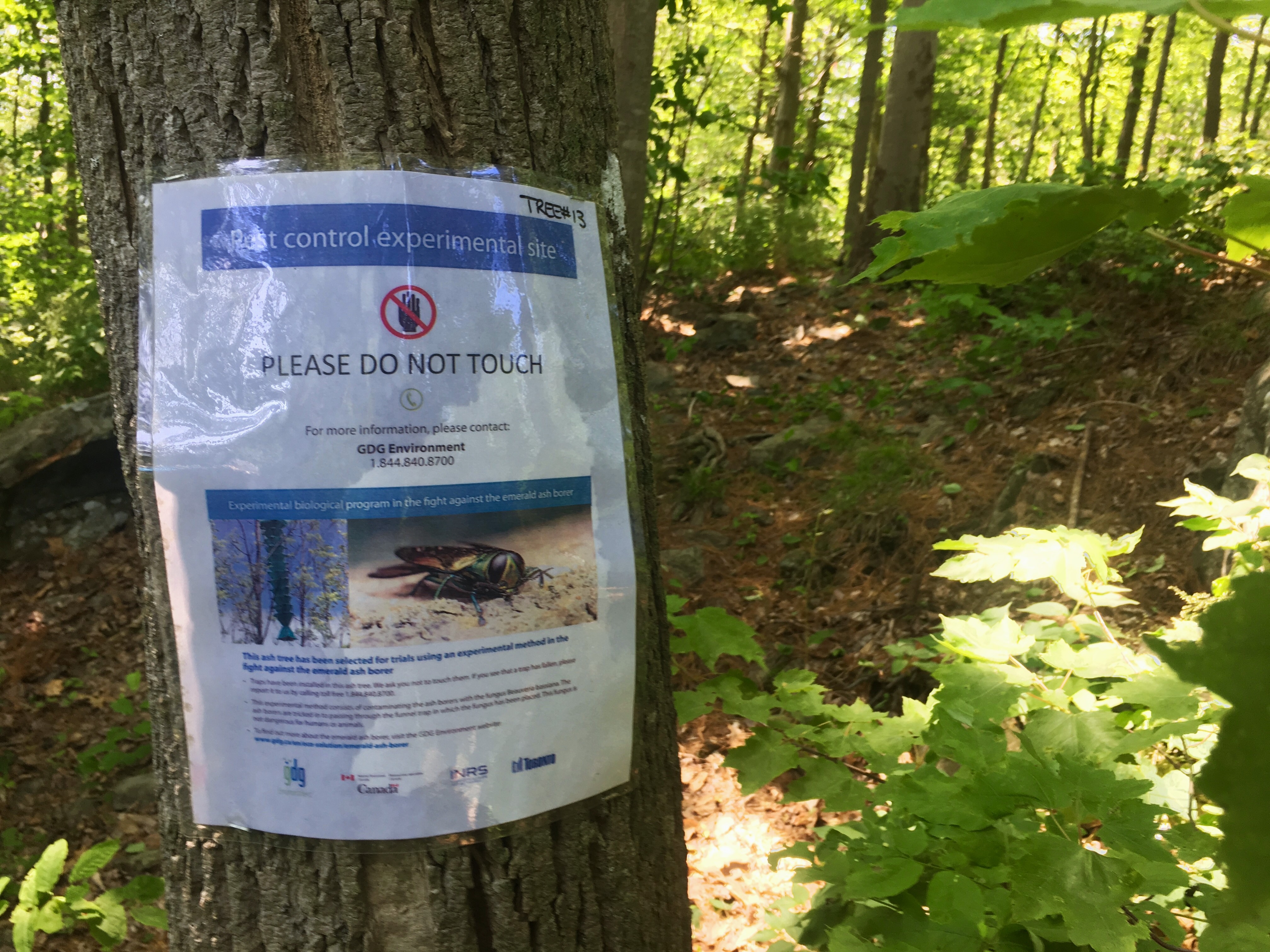 Researchers will return weekly to check on the progress of each test site in an experiment that’s expected to last between four and six weeks. They’ve added signs to the trees asking the public not to touch the traps, and Sweeney encourages anyone who sees an EAB-damaged ash tree to contact the local Canadian Food Inspection Agency office.
