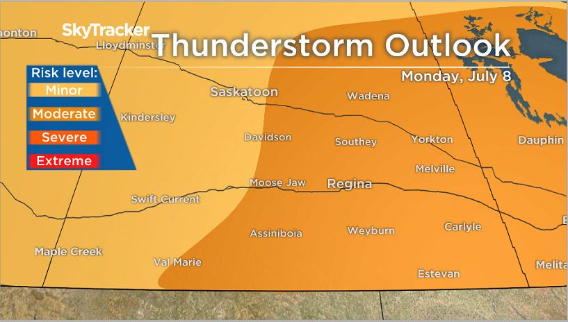 After a stormy and active weekend across Saskatchewan, the risk for thunderstorms shifts into the start of the work week.