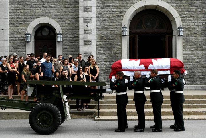 To the blare of a lone bagpipe, a military vehicle bore the casket, draped in a Canadian flag, from a local legion branch in Buckingham to the St. Gregory of Nazianze parish in a military procession Saturday morning.