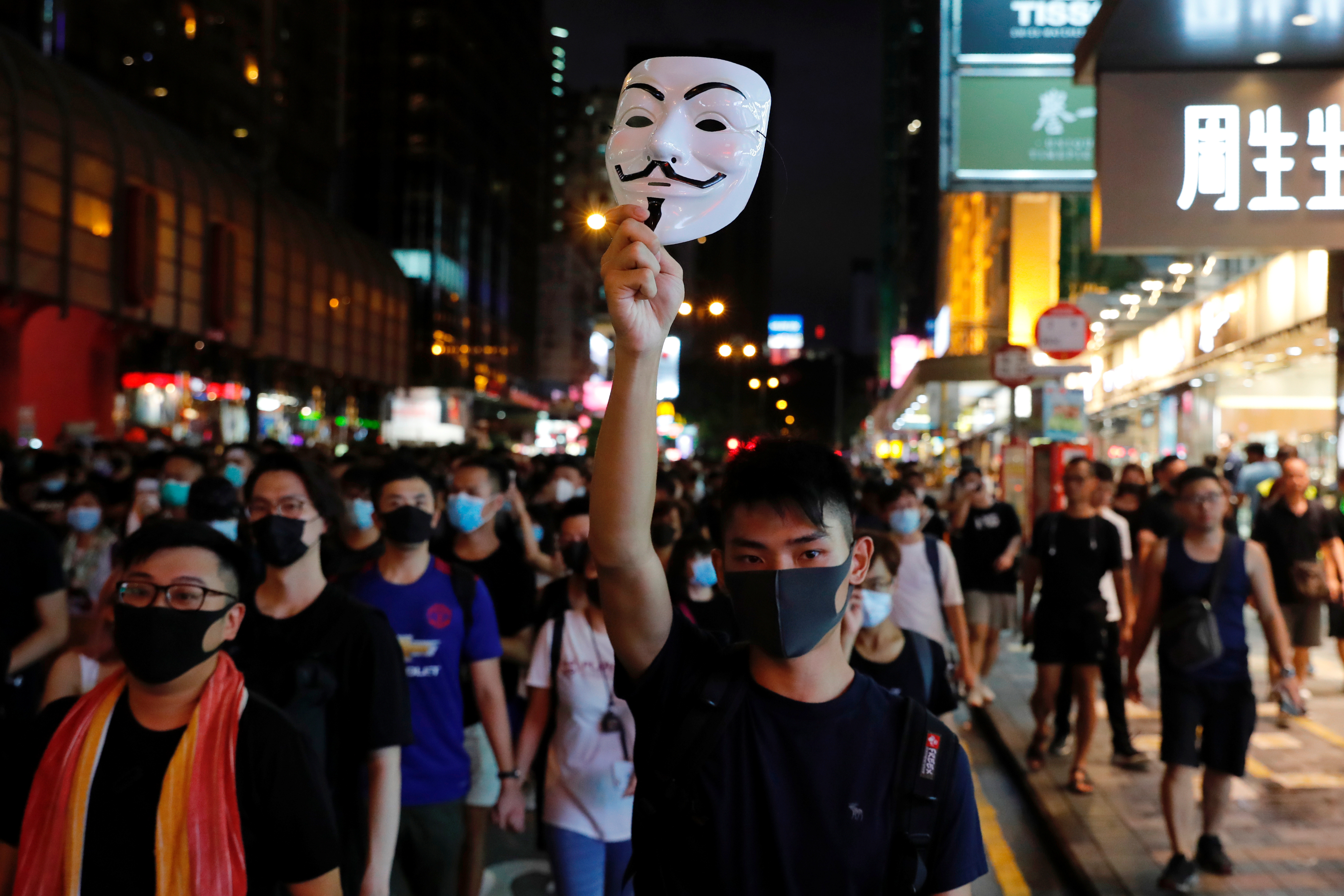 By 7:30 p.m. most had left, but as the evening wore on several hundred regrouped and marched up a busy street toward the densely populated Mong Kok neighbourhood, blocking traffic along the way.