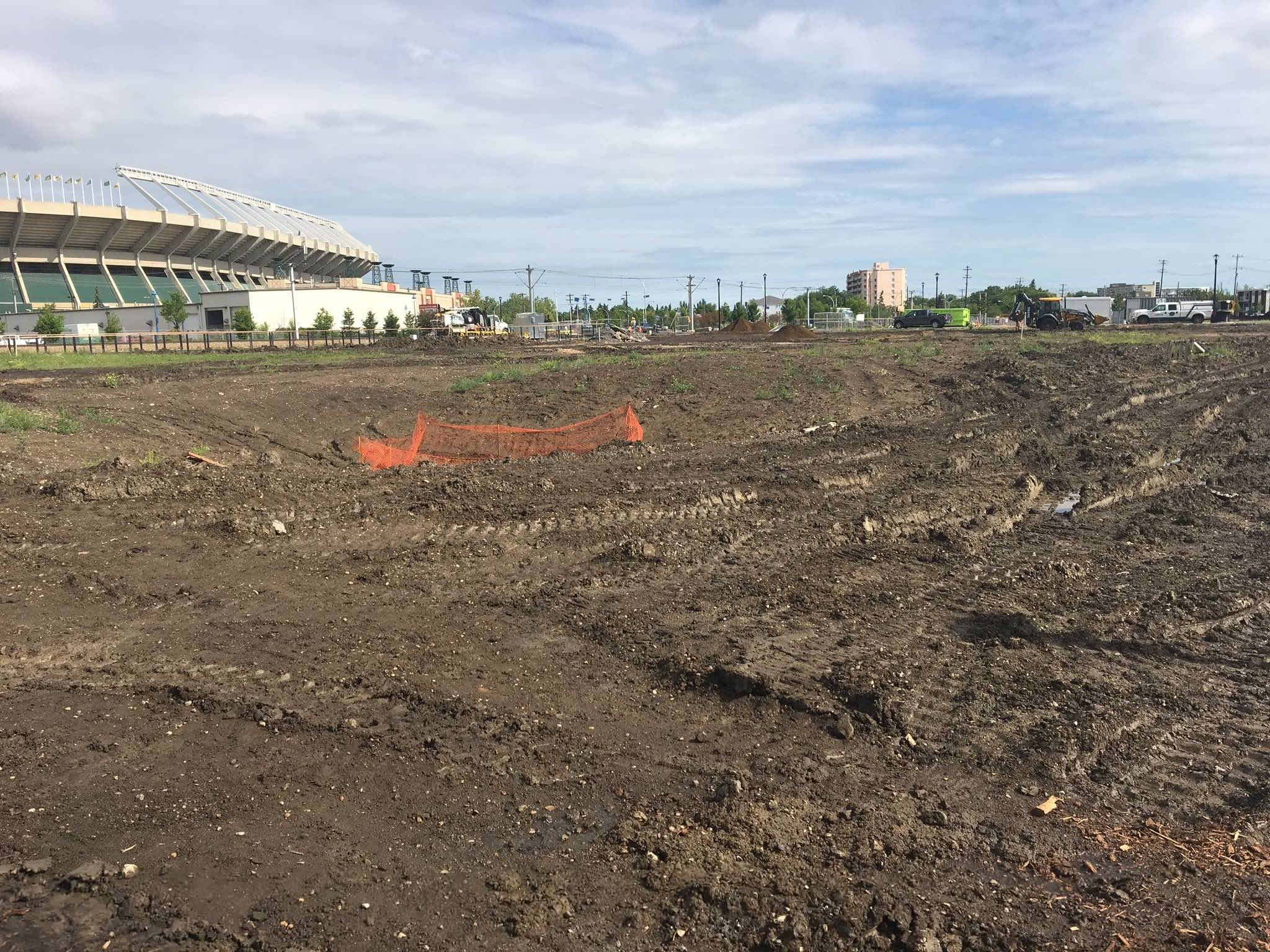 Construction of the new district coincides with the redevelopment of the nearby Stadium LRT Station, which is currently in the design and development phase. Eventually, the new LRT pedestrian crossings will connect the district to the Commonwealth rec centre.