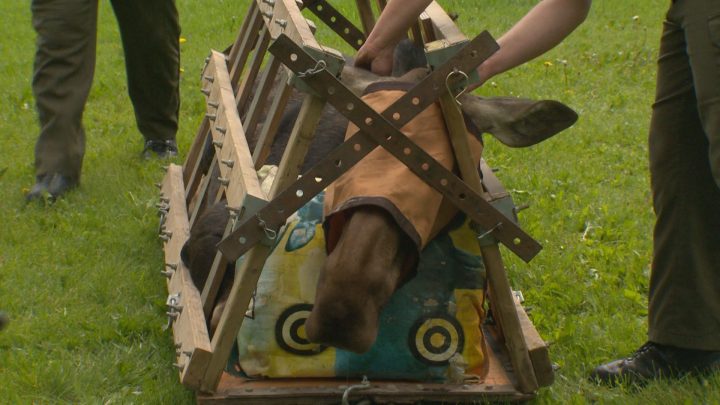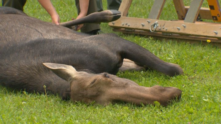 Additional wildlife officers were called in for public safety. Michaud said they were able to immobilize the moose with a tranquillizer.
