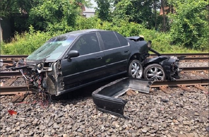 Officials said it’s not yet known why the vehicle was on the tracks and that staff are assessing whether or not the rail crossing lights and barriers were working.