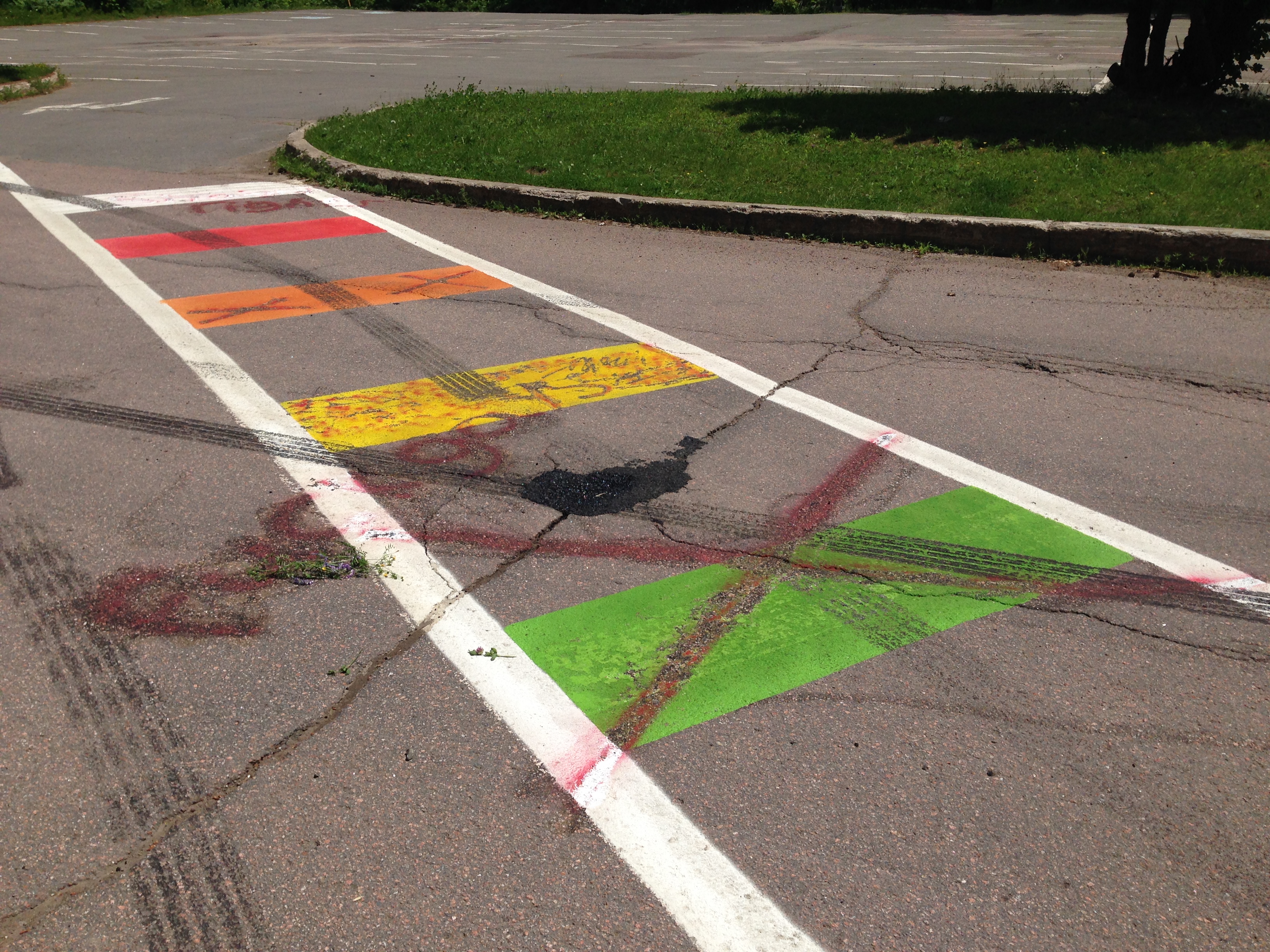 The words “Straight Rights” were spray-painted on the pavement along with another homophobic slur. There were also multiple skid marks.