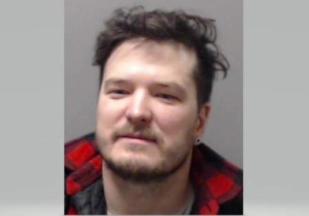 He is described as a Caucasian male with brown hair and blue eyes and tattoos on both arms. He is listed at six-feet-two-inches tall and weighs approximately 200 pounds.