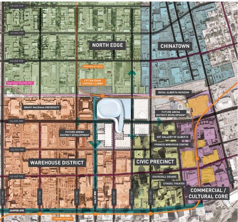 Another step in the development of a downtown arena district in Edmonton is complete, as designers with the firm ‘360 Architecture’ present designs and framework on the project to City Council. Here are some of the images provided in the presentation.