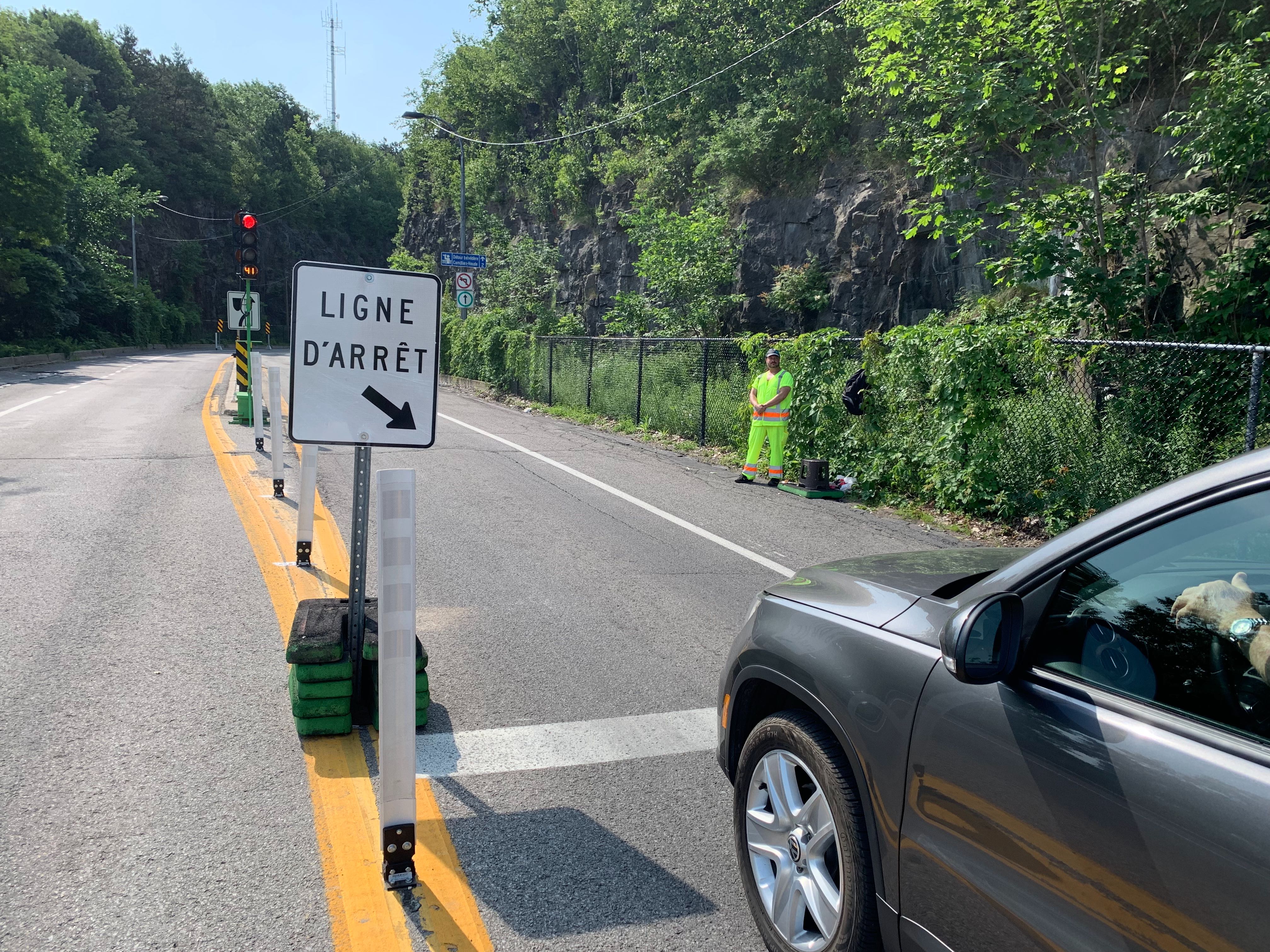 In May, several safety measures were implemented on Mount Royal. Most notably, the narrowest part of the Camillien-Houde Way, which is a two-way street, was reduced to a one-way lane with a traffic light.