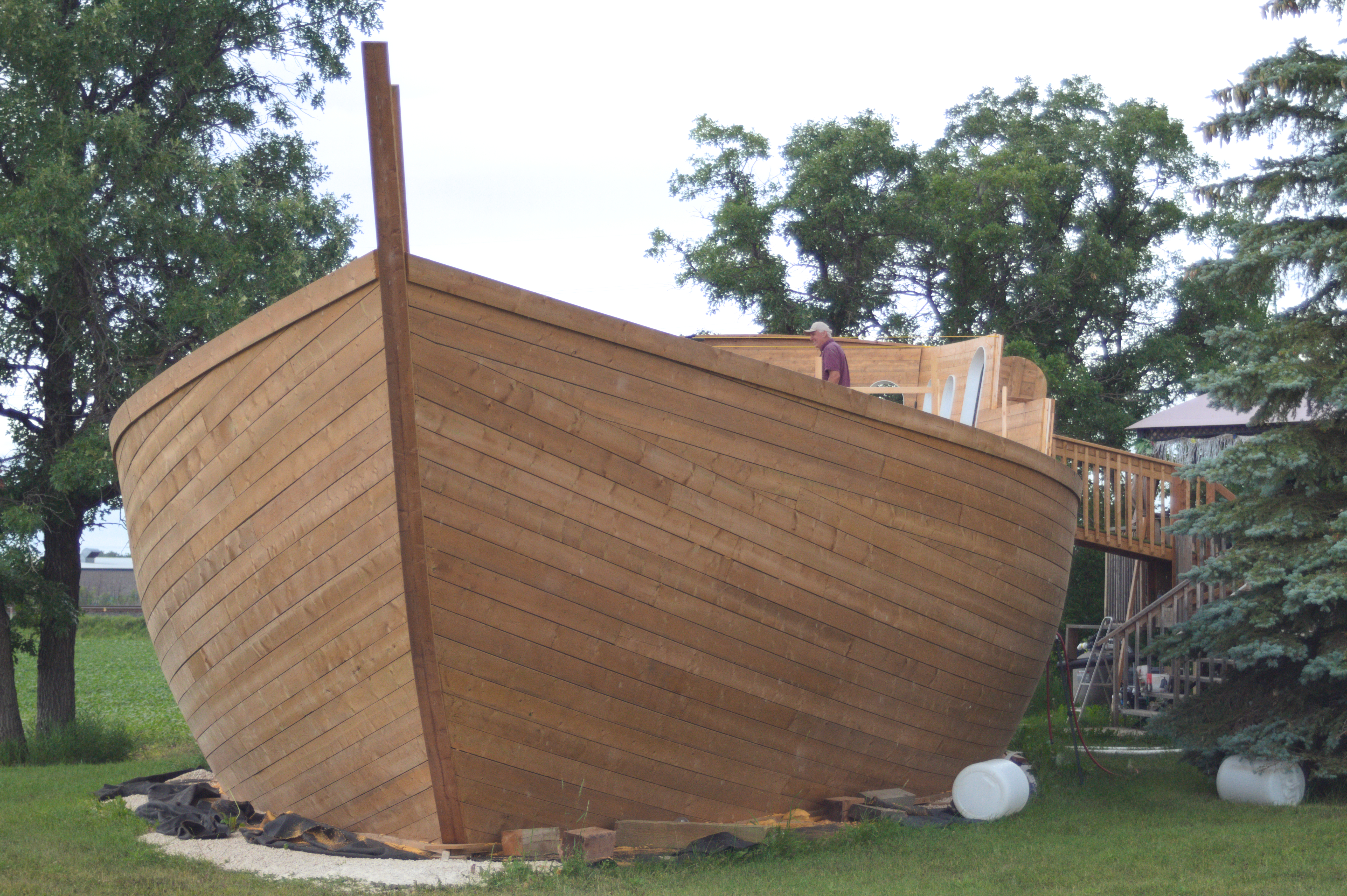 The Winnipeg senior has constructed a full-sized boat around the above-ground pool that sits on his sprawling property near the edge of the city in Charleswood.