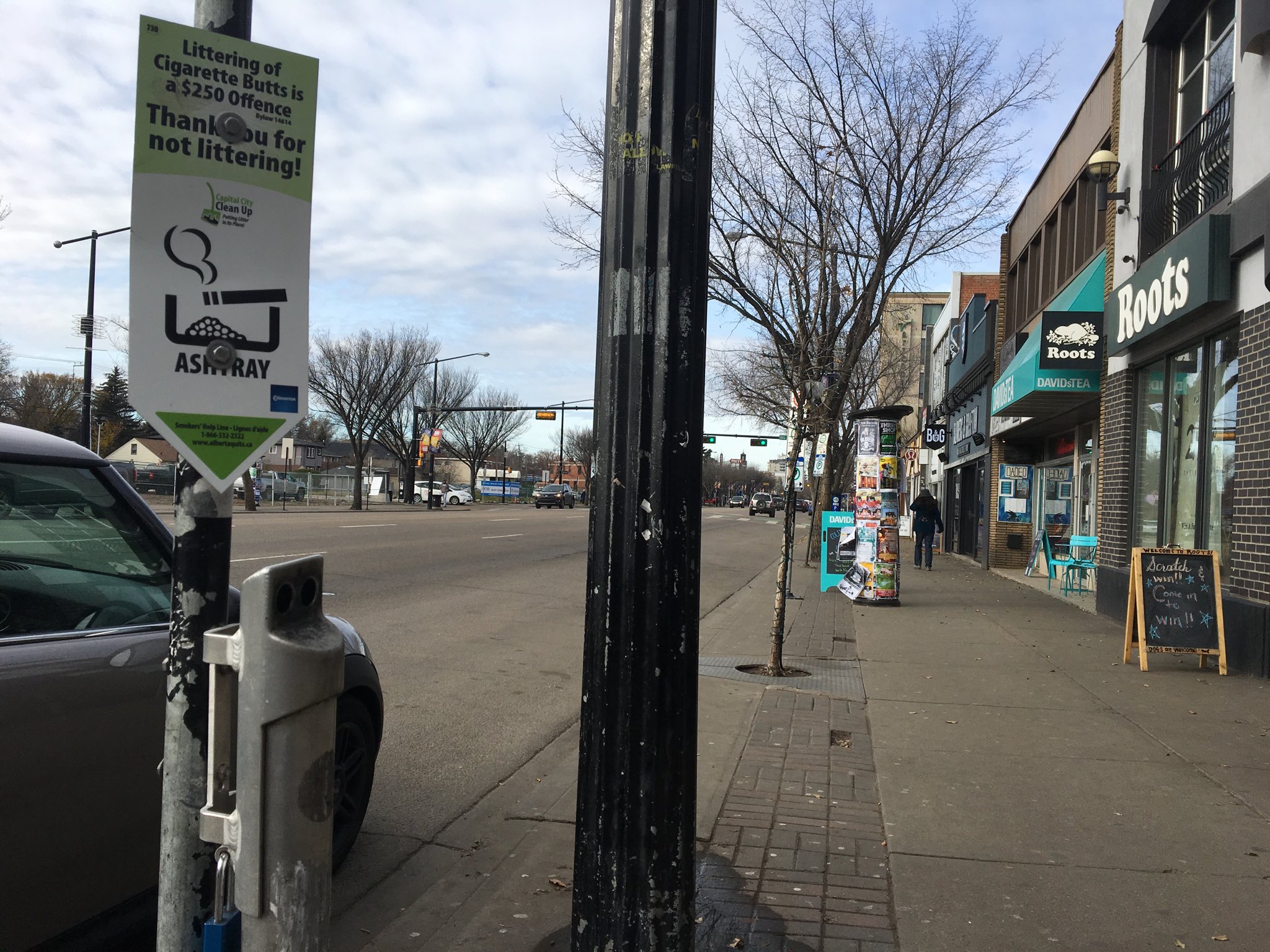 The change made nearly all areas of a busy stretch on Whyte Avenue off-limits for smokers, so most ashtrays along there were removed.