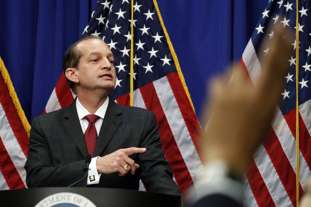 In a nearly hour-long news conference, Labour Secretary Alex Acosta retraced the steps that federal prosecutors took in the case when he was U.S. attorney for the Southern District of Florida a decade ago, insisting that “in our heart we were trying to do the right thing for these victims.” He said prosecutors were working to avoid a more lenient arrangement that would have allowed Jeffrey Epstein to “walk free.”