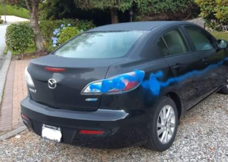 Police say they were called to the 1300-block of Camridge Road on July 9, where they found a vehicle marked with red and blue spray paint.