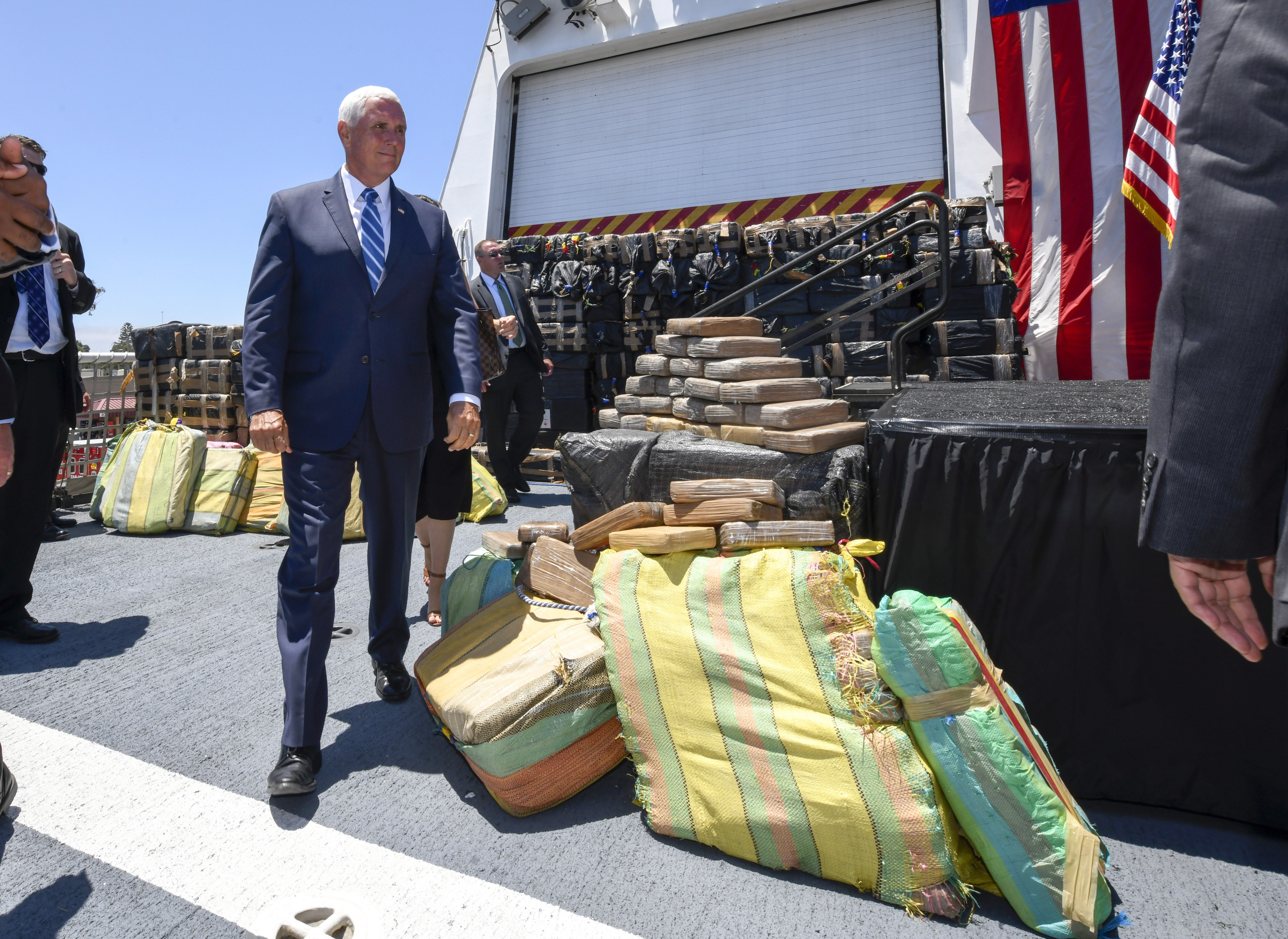 U.S. Vice-President Mike Pence was on hand Thursday as 39,000 pounds (17,690 kilograms) of cocaine and 933 pounds (423 kilograms) of marijuana were taken off the cutter Munro at Naval Air Station North Island in Coronado.