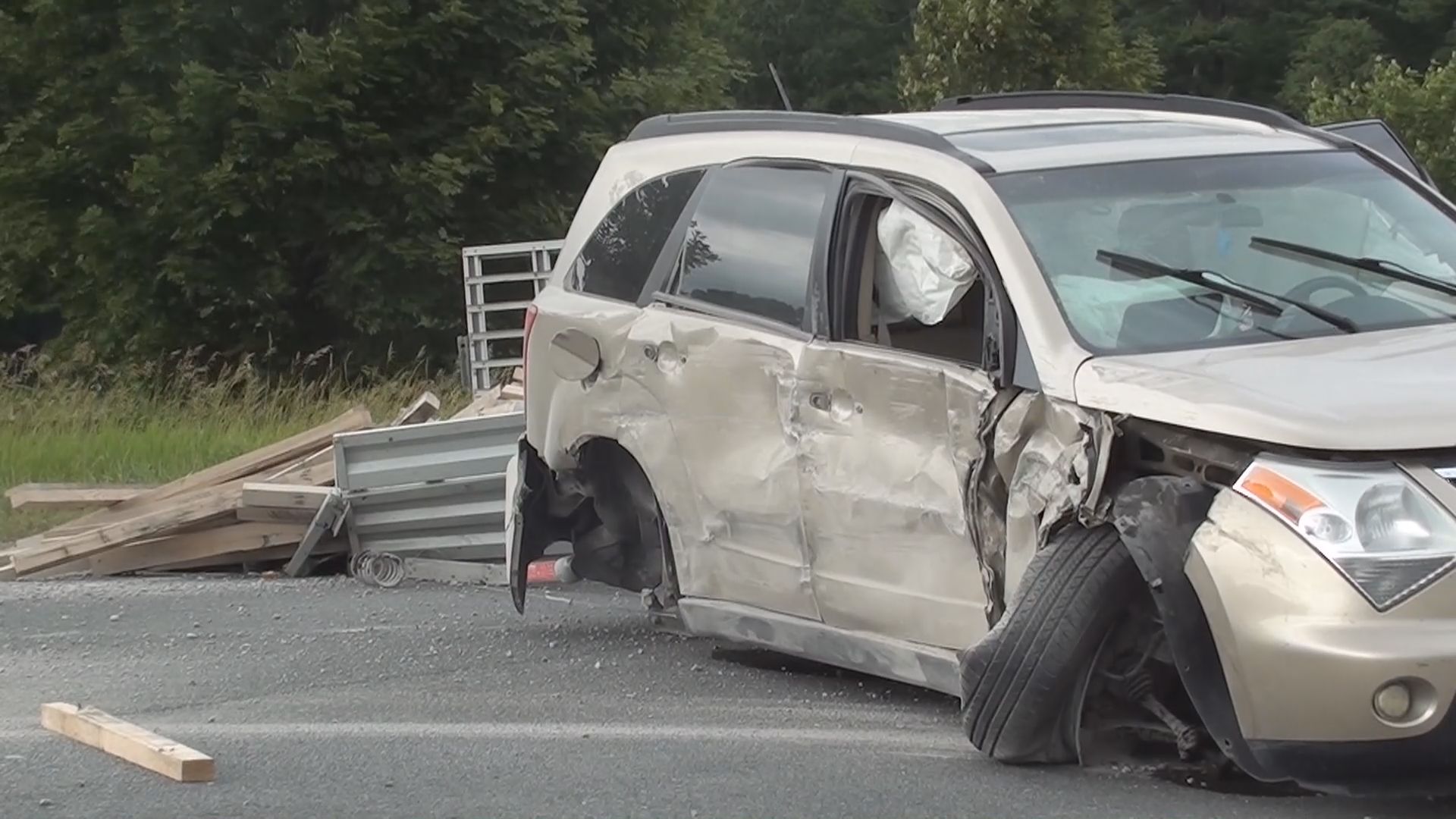 Emergency services were called to Oak Ridges Drive and Tower Manor Road, south of Bewdley, around 4:15 p.m. for a collision between a SUV and a minivan hauling a trailer carrying lumber.