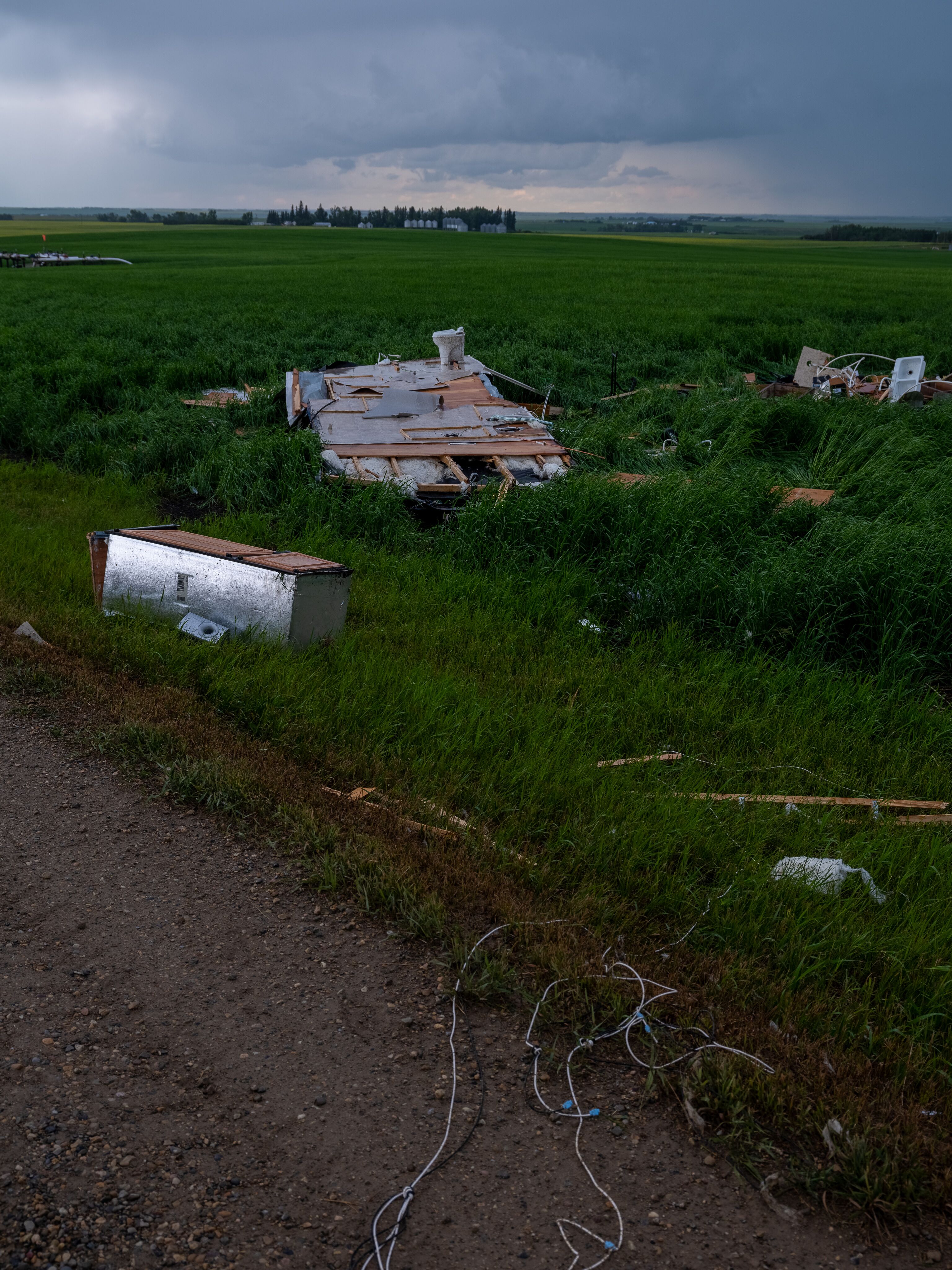 In its weather summary Sunday night, Environment Canada reported a holiday trailer had been destroyed after it flipped over. It estimated wind speeds associated with this tornado were probably between 90 and 130 km/h.