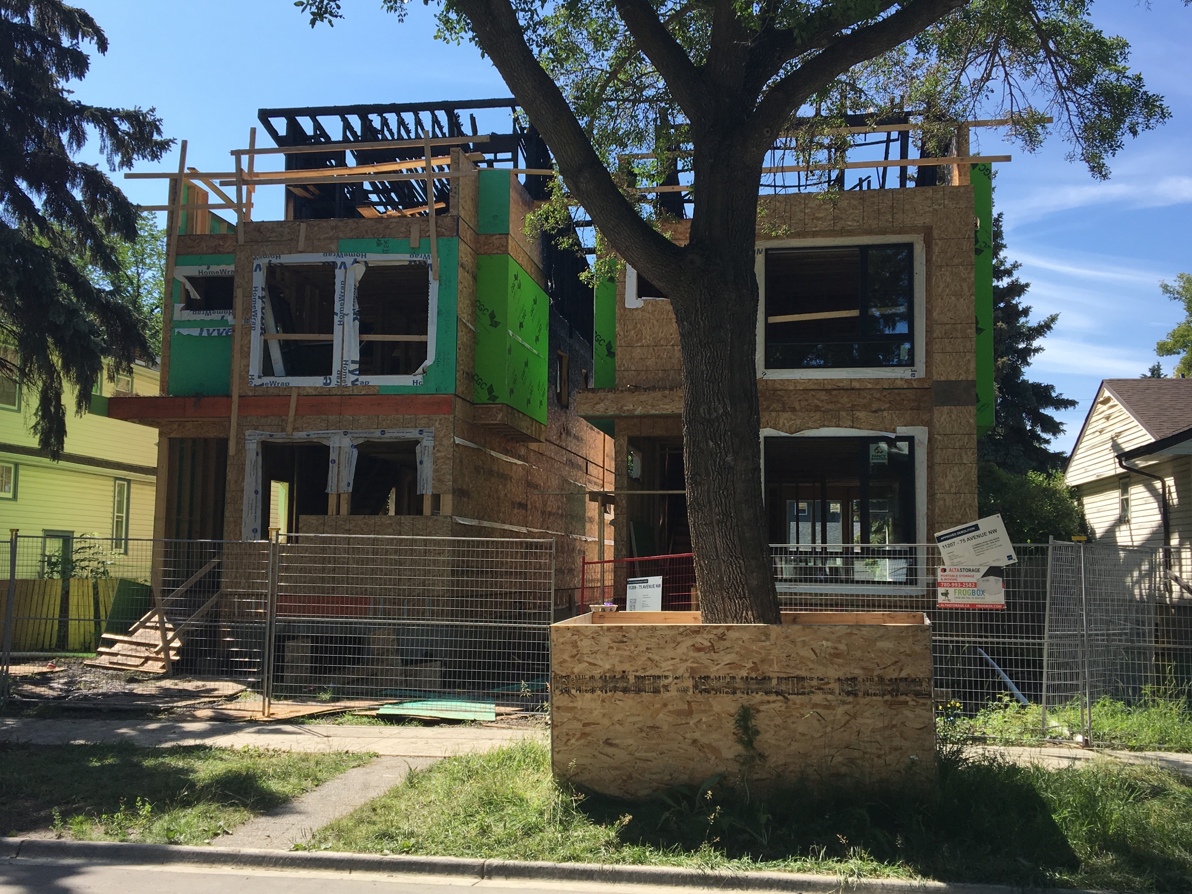 The two houses were being built on 75 Avenue near 112 Street in the McKernan neighbourhood, where firefighters were called to a blaze just after 10:30 p.m.