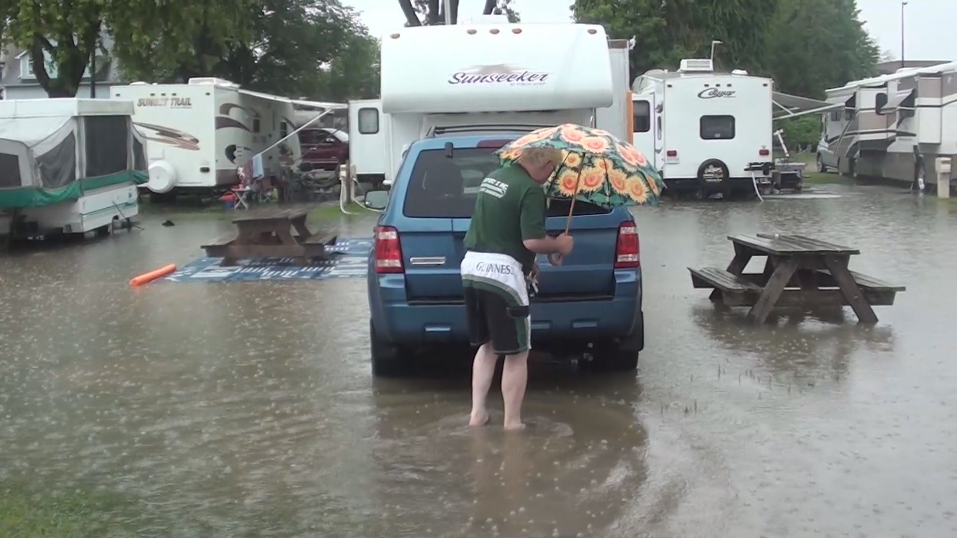 In Cobourg, several streets are facing flooding issues, and the Cobourg beach and municipal Victoria Park campground overlooking the beach are also experiencing flooding.