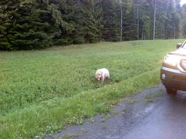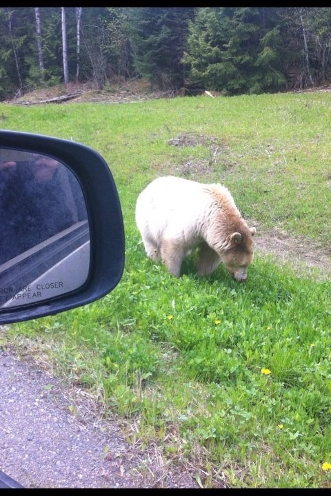 This Kermode bear is a common sight near Terrace. Angelika Langen at Northern Lights Rehab in Smithers says the bear is very well known, and has been in the area for years. They think he is the father of the little white orphan (named Clover) that they are caring for now. Our viewers, Martha Johnson and Delores Gladstone, took these pictures.