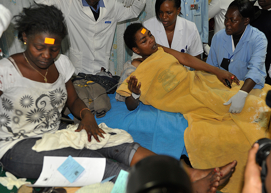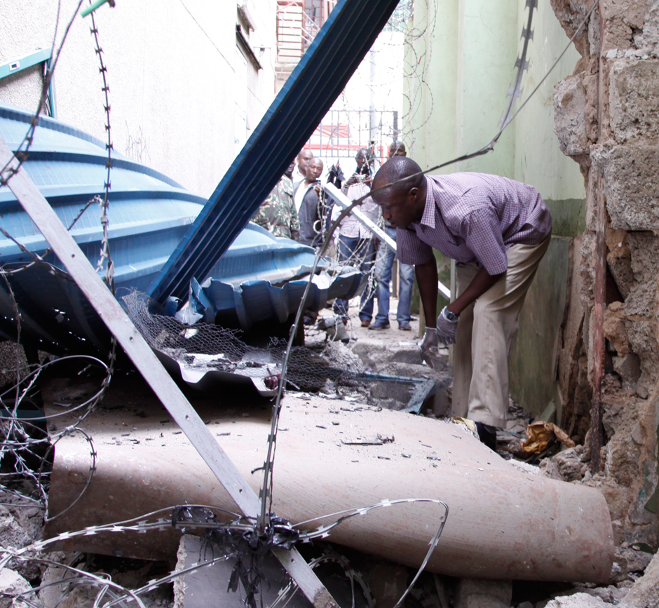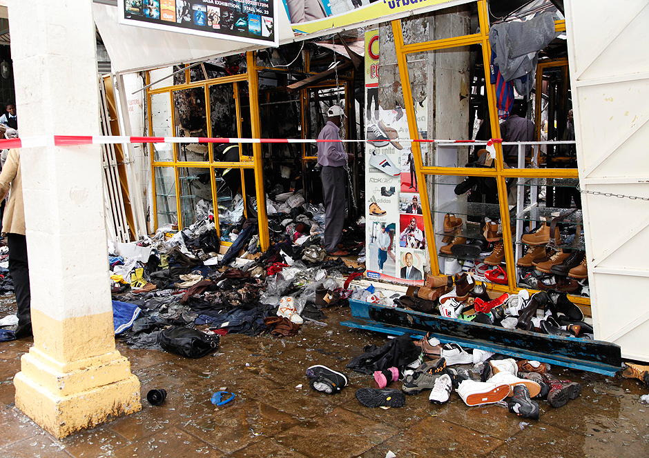 An explosion ripped through a building full of small shops in downtown Nairobi on Monday, injuring at least 33 people, including a woman who blamed the blast on a “bearded man” who left behind a bag shortly before the detonation. Police officials first indicated the explosion could have been caused by some sort of electrical malfunction but the prime minister said it was deliberate. Al-Shabab – an Islamist militant group from Somalia – has threatened to carry out such an attack.