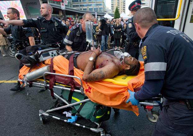 View full screen View full screen View full screen View full screen View full screen View full screen View full screen View full screen View full screen Previous Image Next Image Close Modal Gallery TORONTO – Toronto Police say one person has died as a result of a shooting at the Eaton’s Centre in the city’s downtown. A 13-year-old boy has also been critically injured. Warning: Graphic images. Advertisement