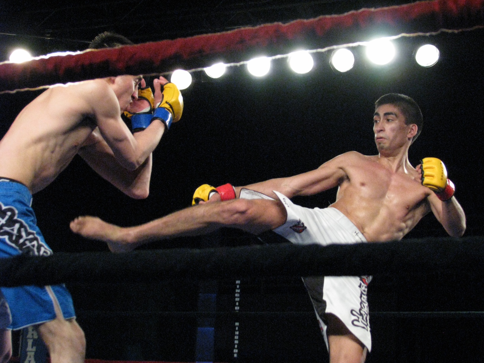 Bout 7 was the last Muay Thai bout of the night, and Adam Brown wasted no time establishing his presence, landing a hard push kick to Wayne Pokornik’s face on their very first contact. Pokornik was far from outclassed and landed his own stinging knees in the clinch, but Brown landed a slick inside leg kick at will, and scored with more push kicks to the face and hard body kicks to take the decision.
