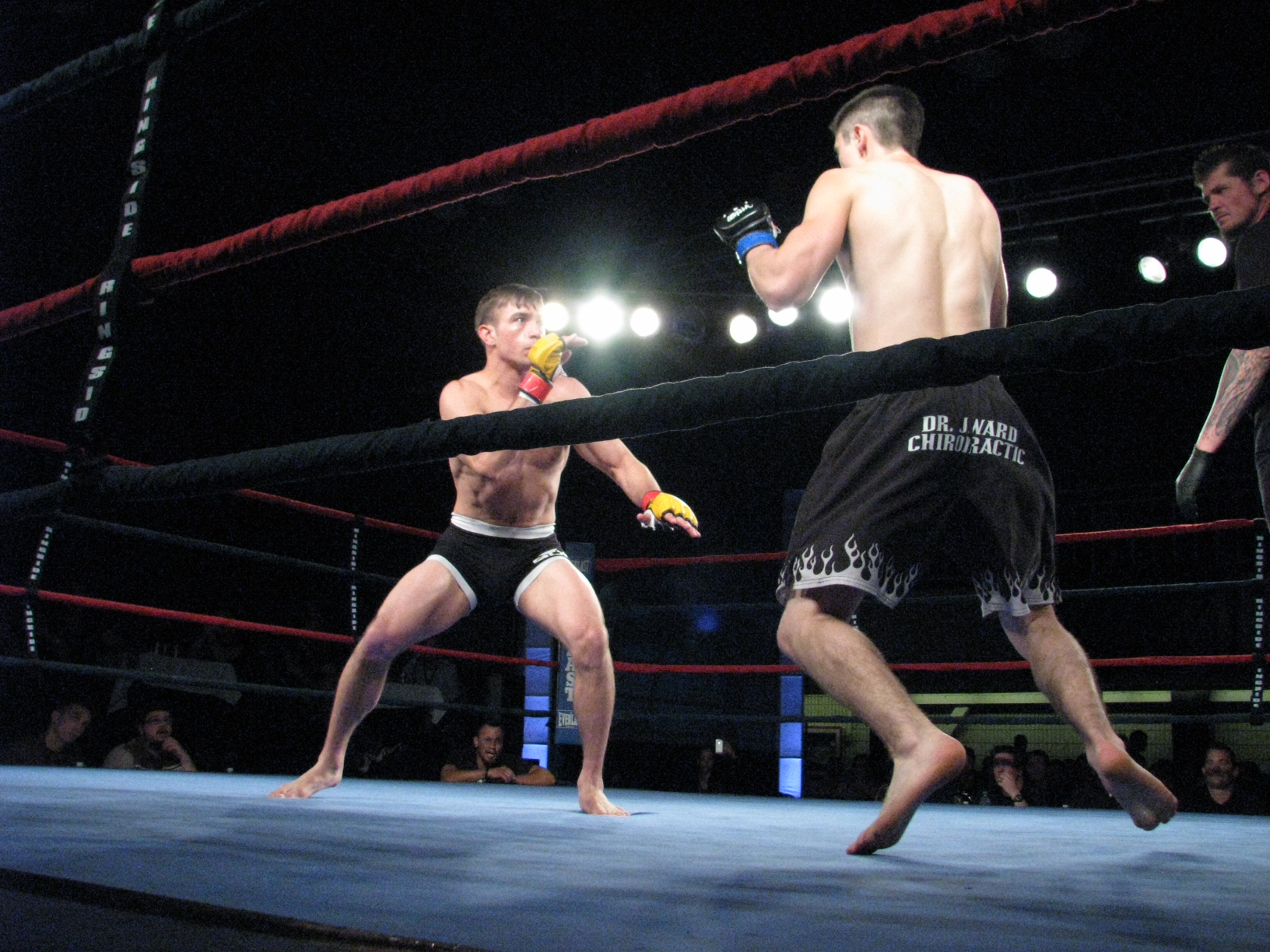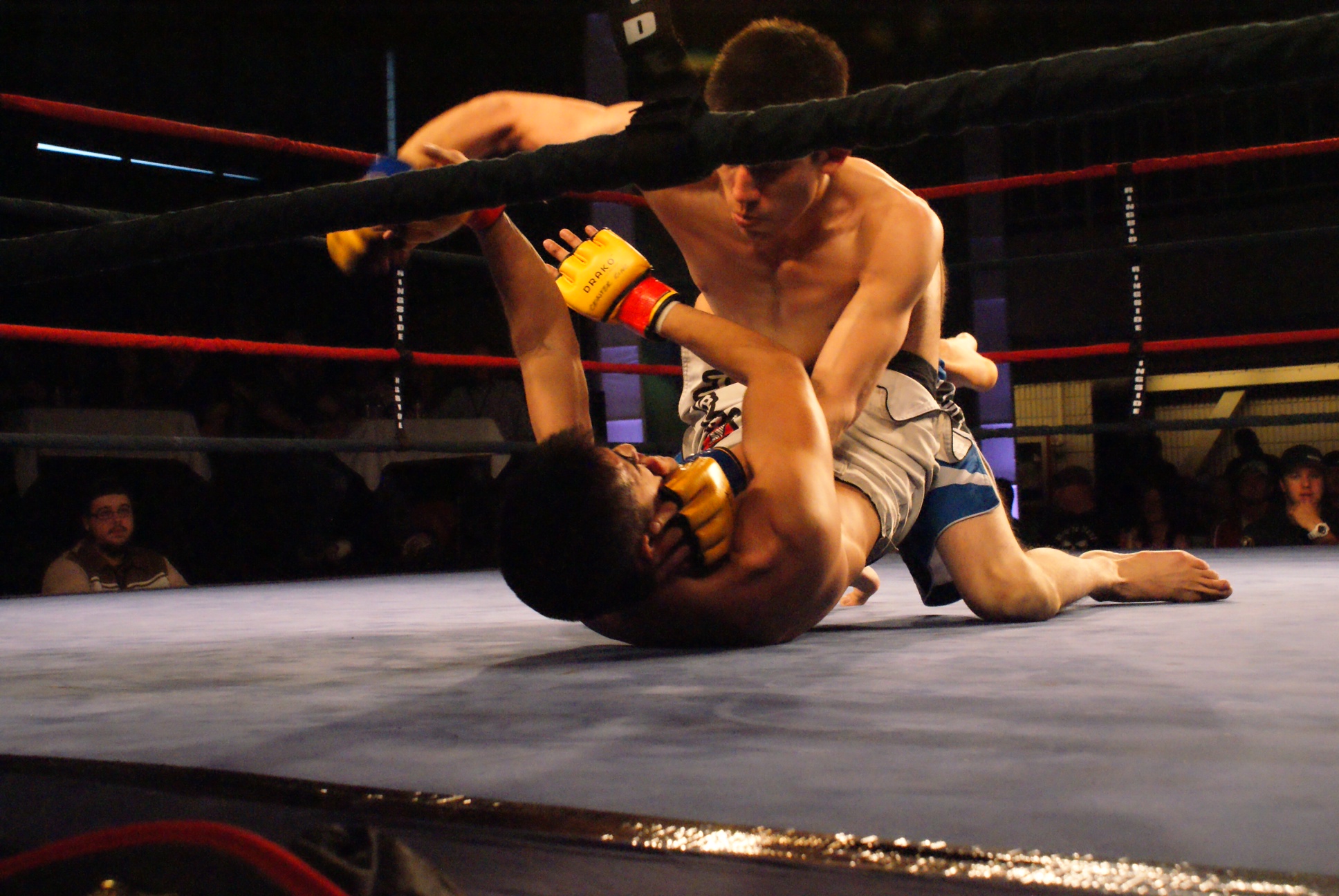 The evening kicked off with a rousing back-and-forth Muay Thai fight, with Joe Alisaukas taking a decision win over Calvin Harle. The second fight saw Evan Isbister out-grapple Wesley Bowman in the first round, working to a back mount and threatening with chokes, but in the second Bowman caught Isbister with a couple of punches. Then the fight went to the ground, and this time it was Bowman on top, where he would grind until the end, coming back to earn a split draw from the judges.