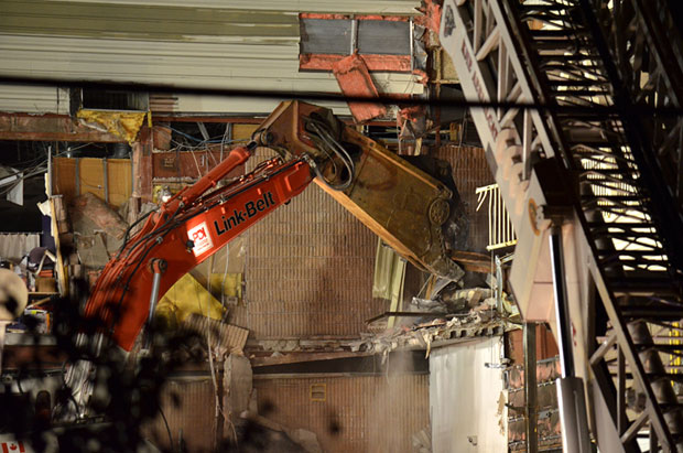 Lake, Ont., where possible victims may lie buried in the debris. According to Global National reporter Jennifer Tryon two ambulances have arrived on the scene. A huge robotic arm spent the night removing debris from the damaged mall to clear a safe path for rescue crews and search dogs.