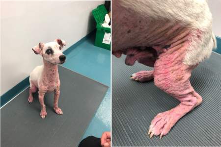 The Humane Society says he has been tentatively diagnosed with chronic severe allergies, secondary bacterial and yeast infections, and is being treated for external parasites including mange.