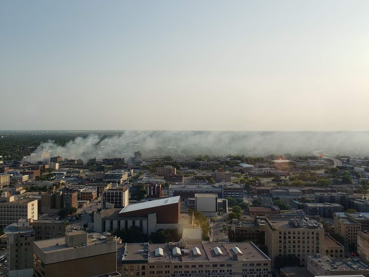 The public is being asked to avoid the area and Fire Chief John Lane is advising that people close their windows due to smoke from the fire traveling east across the city.