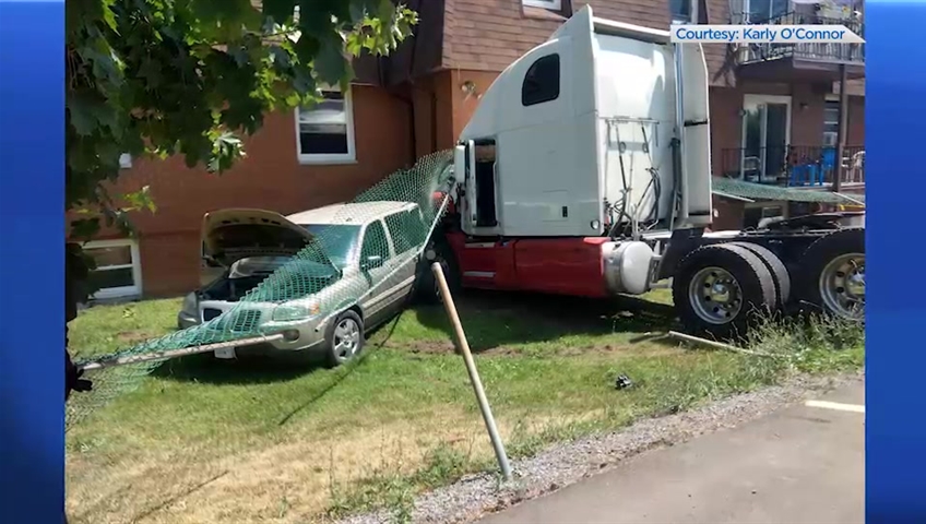 Karly O’Connor was on her patio on the third floor with her two-year-old daughter when the transport truck rammed into the side of the building.