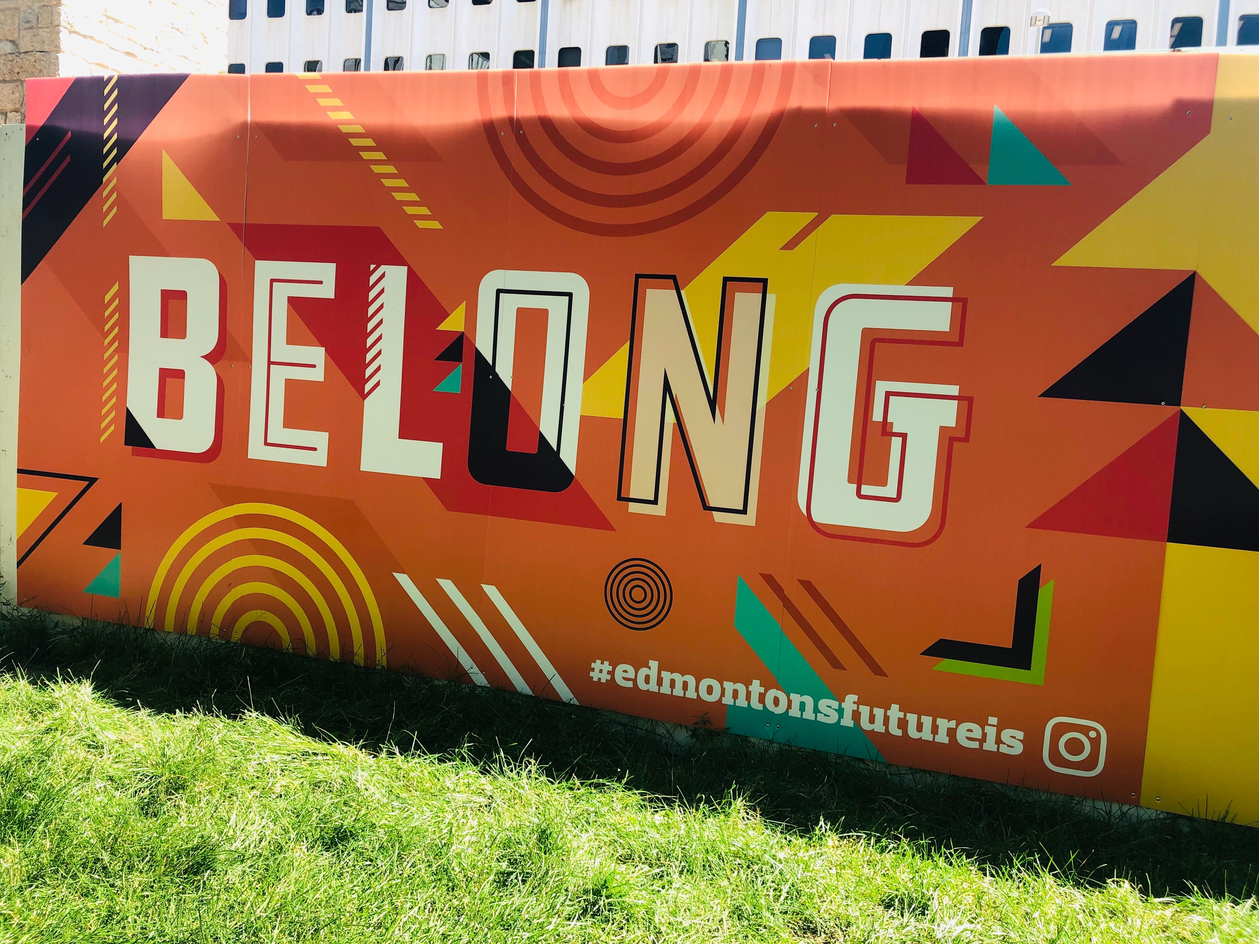 The six colourful walls display six words that Edmontonians selected as values that are important to them as the city grows and changes.