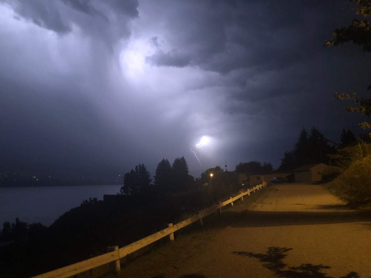 A storm system that moved into the Okanagan and Boundary areas from Washington state brought lightning with it for the second night in a row.