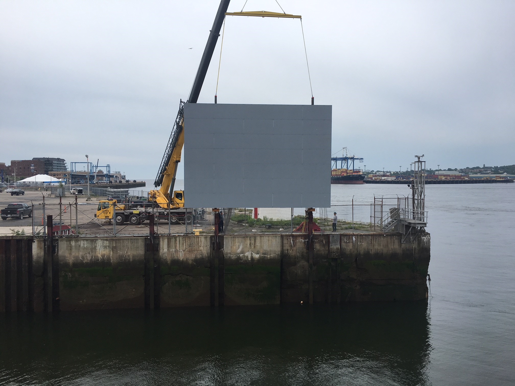 On Wednesday, a 30-by-40-foot aluminium canvas was lowered into the water at the Saint John Market Slip.