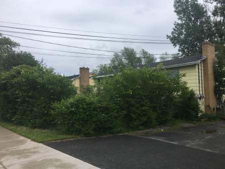 She says with the front yard full of tall, overgrown shrubs, bushes and trees, it blocks the view of the sidewalk and road for drivers using the driveways on either side of the property.