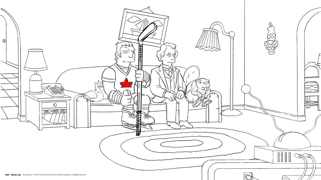 “I’ve never seen a Canadian couch gag before so I figured I might as well make it as Canadian as possible,” he says of his decision to include Sir John A. MacDonald, a hockey player, a loon and a beaver — and Maggie replacing her pacifier with a hockey puck.